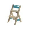 židle pro děti z masivu s výškově polohovatelným sedákem a podnožkou. Lze jí rozšířit o ohrádku pro ty nejmenší děti a také o čalouněný podsedák.