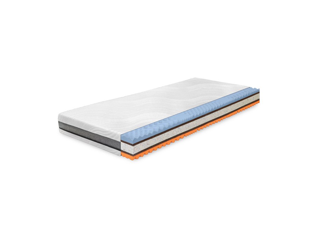 Snímatelný a pratelný potah Galaxi. Matrace je vhodná pro pevné i ručně polohovací rošty. Záruka 5 let. Materiál kokos + pojená RE pěna + studená HR pěna.