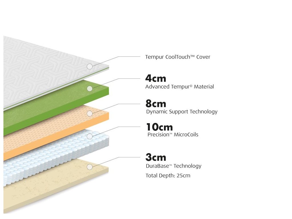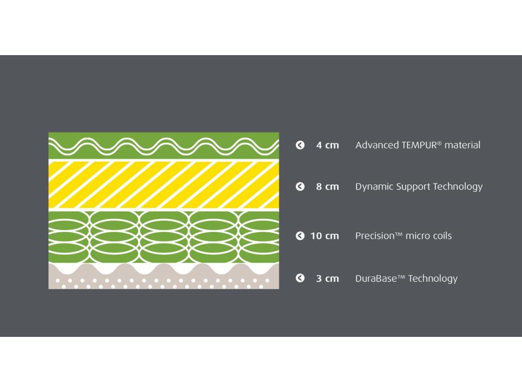 - 8 cm dynamická podpůrná vrstva Tempur® - poskytuje další rozložení tlaku a oporu