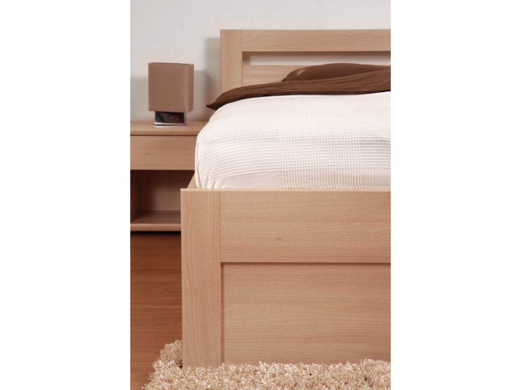Postel je precizně propracována a vytváří v interiéru pocit dokonalé harmonie. Jednoduché linie čela postele dodávají lůžku upravený vzhled.