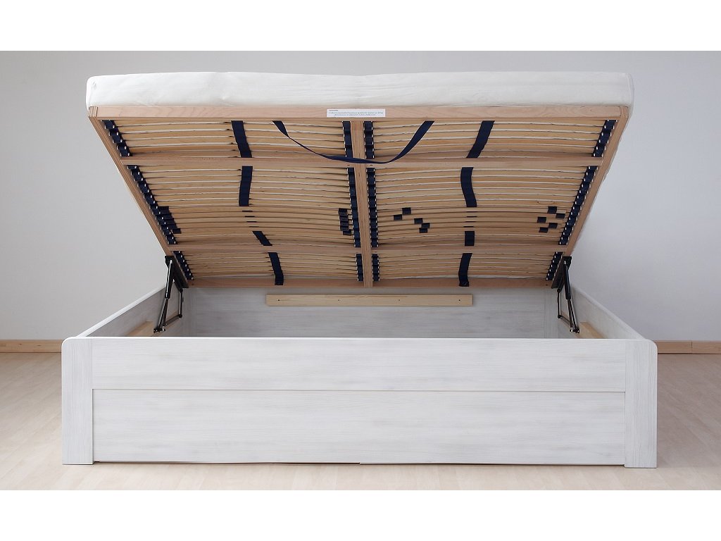 Součástí postele je velký výklopný úložný prostor, který jedinečným způsobem dotváří vzhled postele. Díky dostatečné hloubce má velmi praktické využití zejména pro uživatele, kteří potřebují využít prostor v ložnici na maximum. Standardně je k posteli MARIKA dodáno dno z bílého sololaku tl.3mm, které je volně uloženo na podlahu.