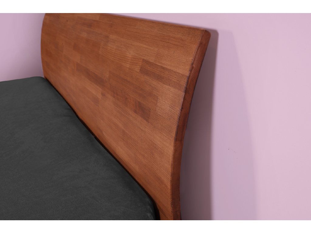 Oblé čelo je vyráběno z jednoho kusu, který se tepelně ohýbá a díky tomuto postupu je velice stabilní a pevné. Čelo postele je zároveň součástí rámu, tedy sahá až na zem. Dokonalost opracování a preciznost výroby ocení všichni, kdo mají rádi práci s detailem. Jemnost na dotek a zaoblení pak dodávají pocit bezpečí a maximalizují komfort, který postel nabízí. Ač tato postel působí na první pohled robustně, přesto neztrácí svojí eleganci, a naopak vyzdvihuje ráz dřeva.