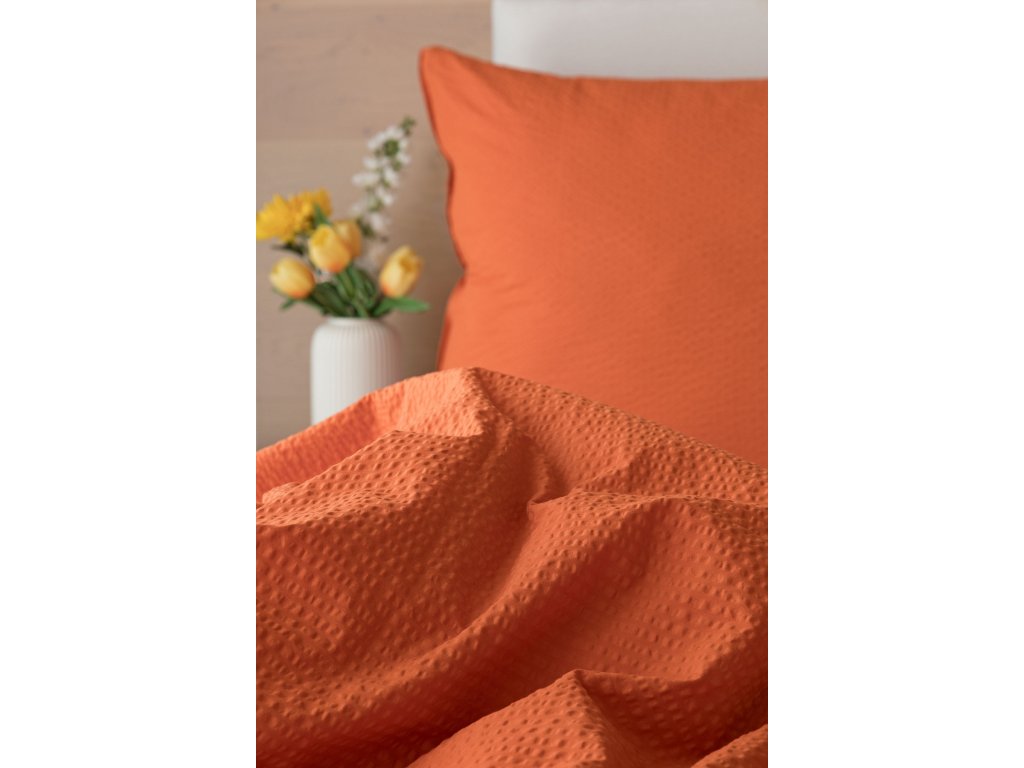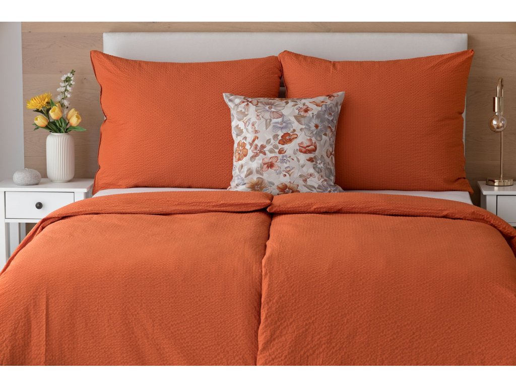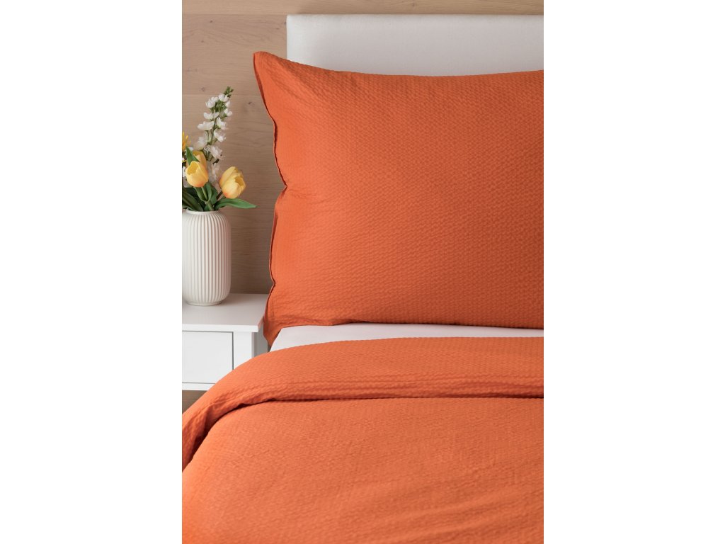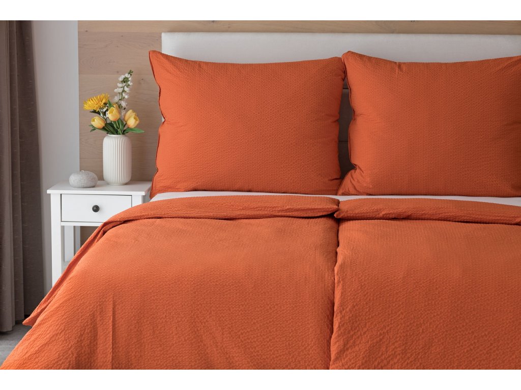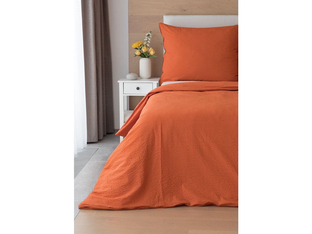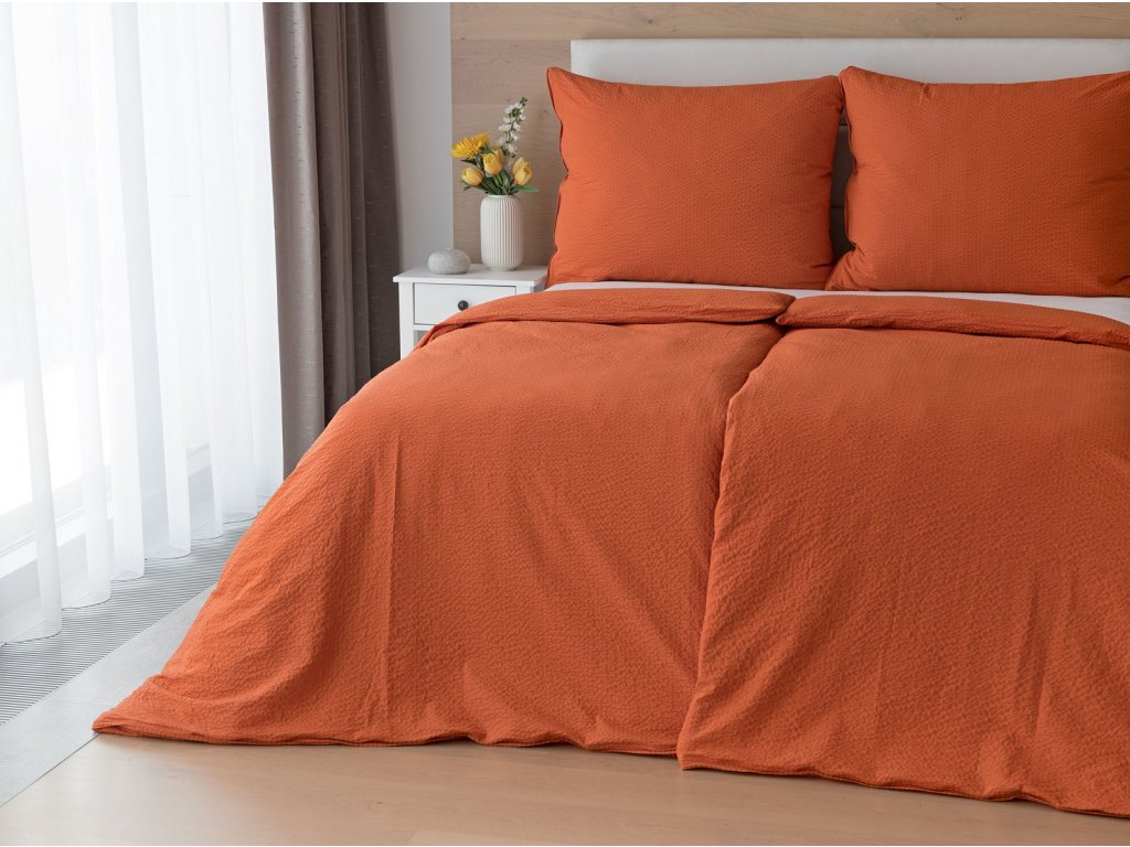 Jednoduché krepové povlečení v terakotové barvě, které se nemačká a nemusí se žehlit.