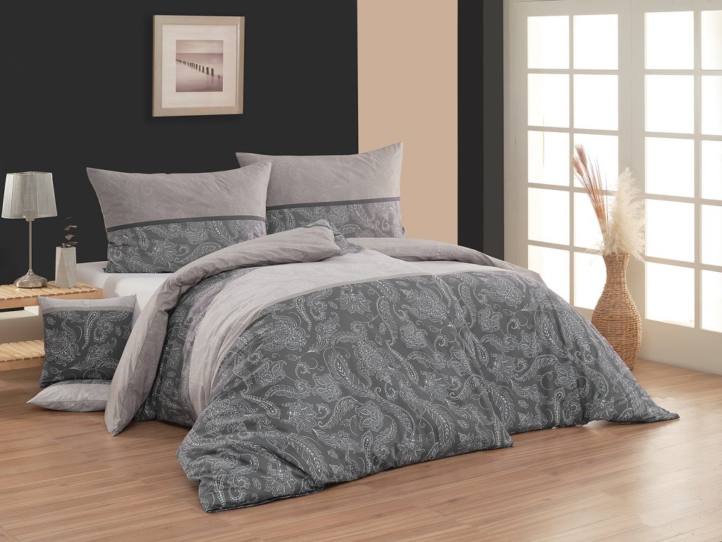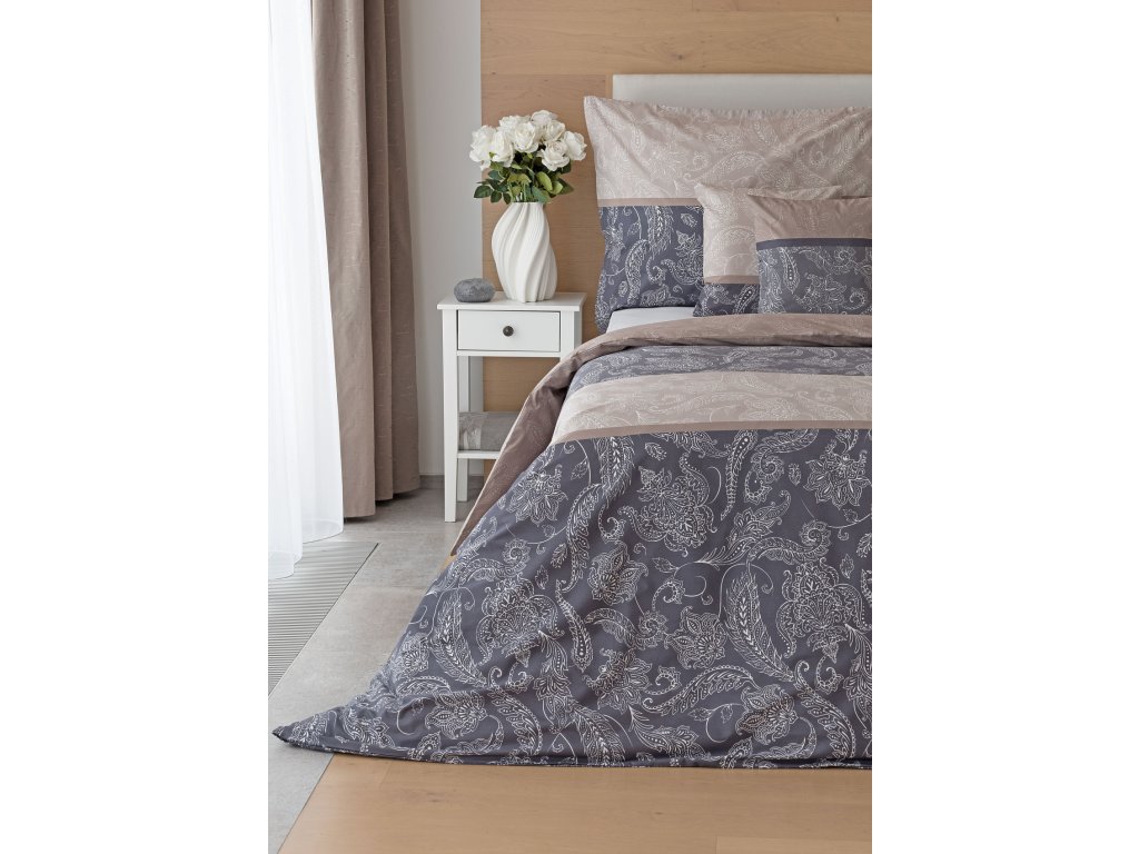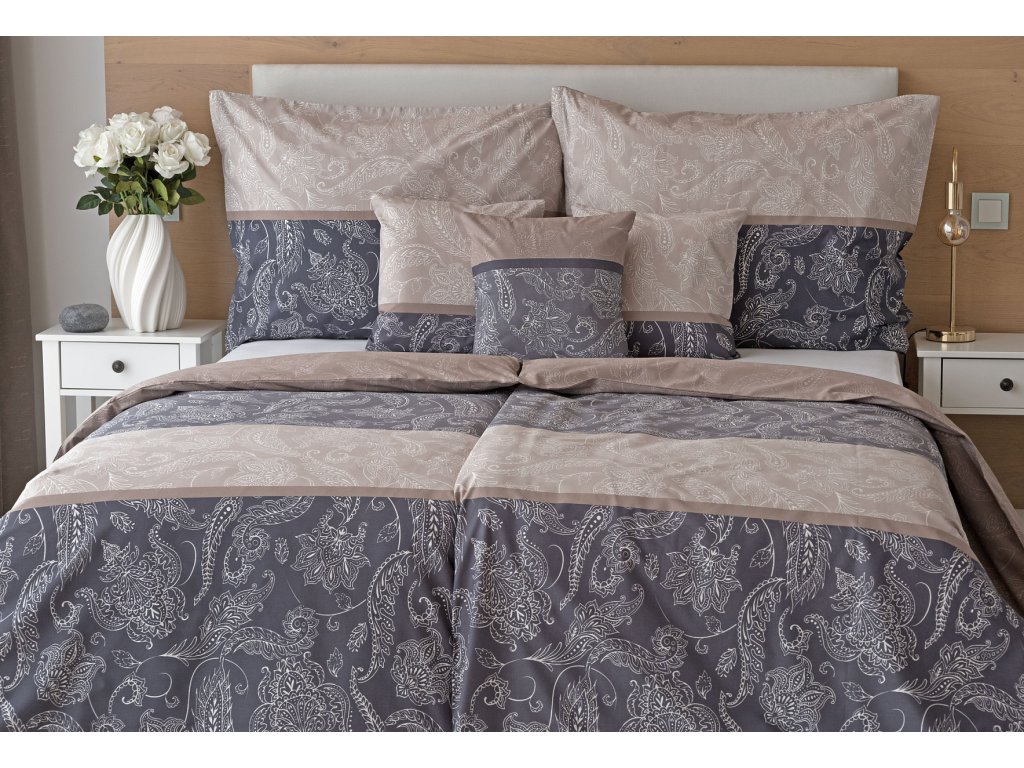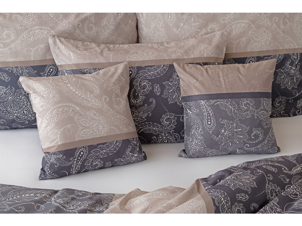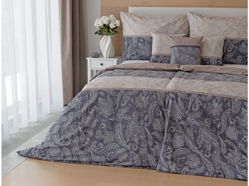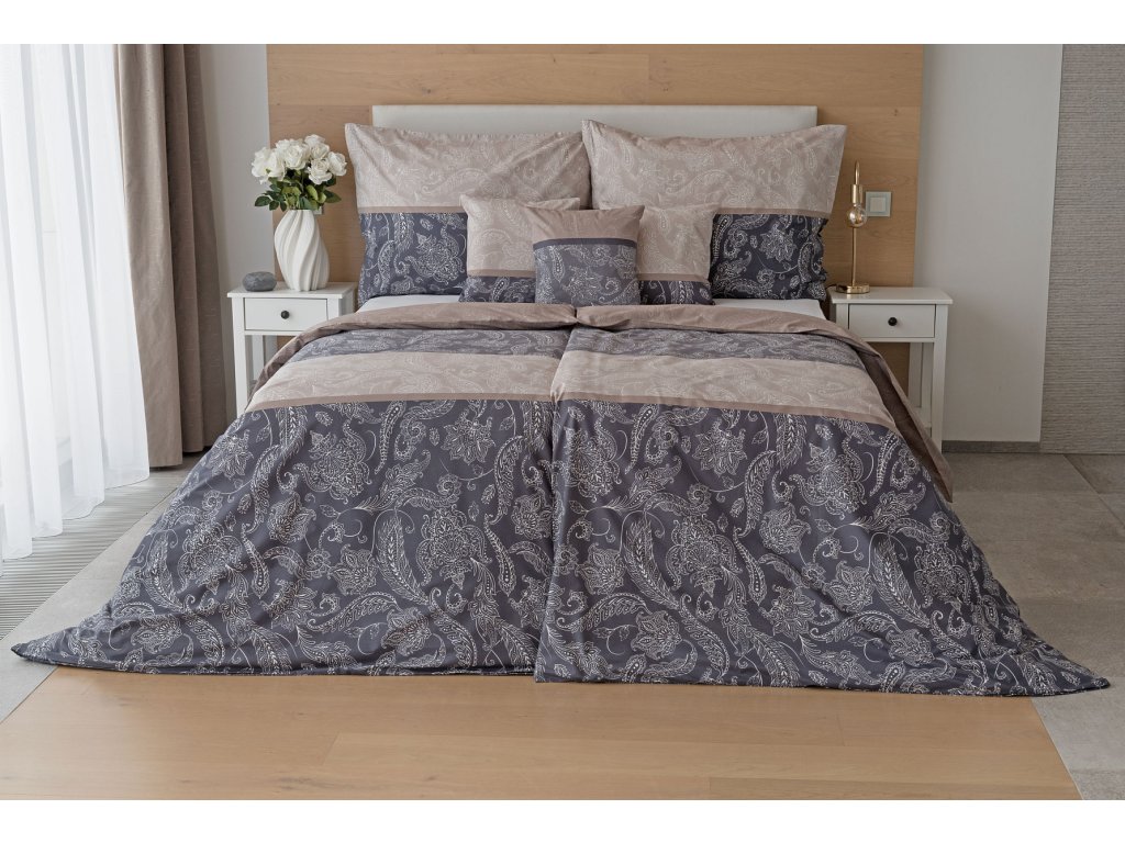 Tento orientální vzor vyniká svou jemnou kresbou a dokonale ladí jak s moderním, tak s tradičním interiérem. Podklad povlečení tvoří oblíbené hřejivé tóny přírodní béžové a šedé barvy.
