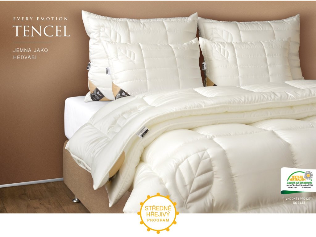 má díky lyocellovým vláknům jedinečné užitné vlastnosti. Vytváří suché a zároveň teplé mikroklima ve vašem lůžku. Předností přikrývky i polštáře Tencel je, že zajišťuje výbornou nasákavost a odvod vlhkosti do okolního prostředí. Tím vytváří ideální prostředí pro klidný a příjemný spánek. Every TENCEL se řadí svými vlastnostmi mezi ložní výrobky nejvhodnější pro osoby se zvýšenou citlivostí kůže a zvýšenou potivostí.