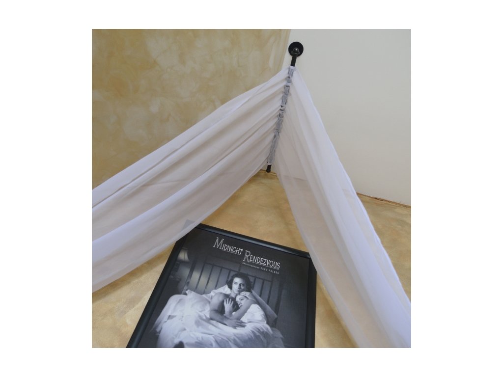 Sada se skládá ze dvou stropních úchytů, tyče s koncovkami ve tvaru kuličky a dvou držáků na závěs. Možno dodat včetně bílé dekorační látky nebo bez. Látka je pro snadnější manipulaci při věšení a sundávání ušitá bez tunýlku, tj. stačí přetáhnout přes tyč.
