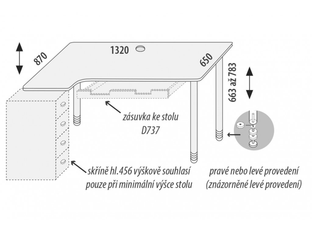K psacímu stolu lze dokoupit zásuvku 003-D737 a kontejner 003-D710 nebo 003-D711 (pouze při maximální výšce stolu).